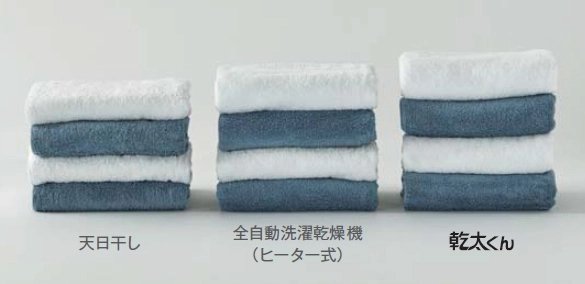 また、ガスならではのパワフルな温風をたっぷりと送り込んで乾燥させるため、繊維が根元から立ち上がり、タオルや衣類がふわふわの仕上がりになります。